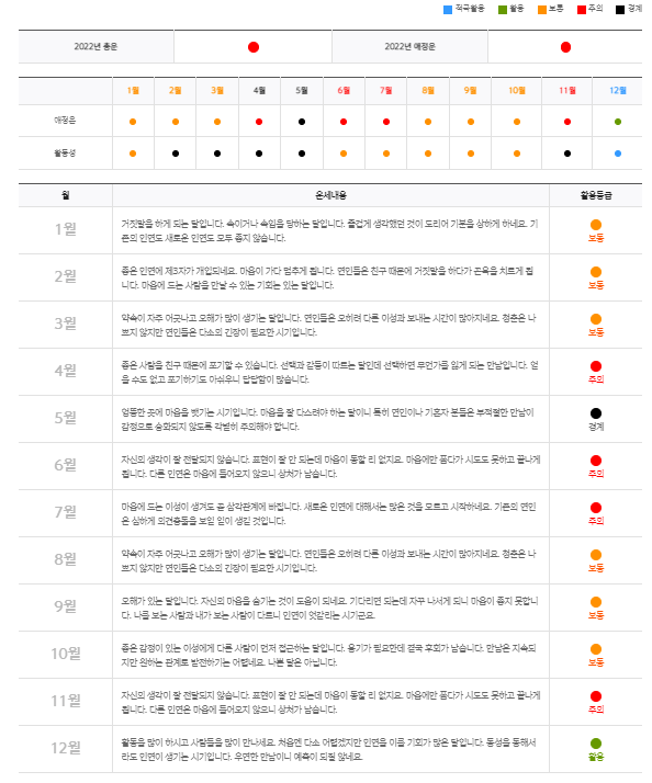 월별 중 가장 기운이 좋은 달에 대한 내용과 주의해야 될 사항들이 나와있으니 참고하여 좋은 방향으로 전개하실 수 있습니다
