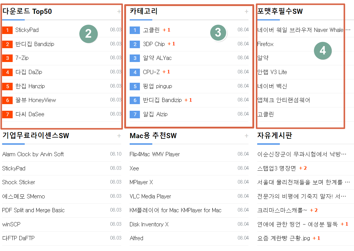 오히려 네이버 소프트웨어보다 더 많은 무료 유틸 소프트웨어가 잘 정리되어 있습니다